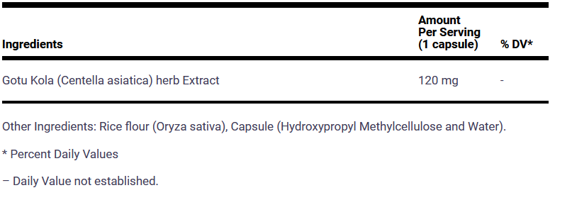 Gotu kola extract 120 mg, auxiliary components.