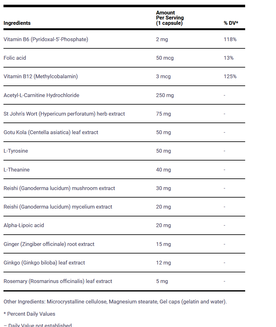 This ingredient helps calm an overexcited nervous system. Active compounds in the mushroom improve nerve cell function, lower cholesterol, help dilate blood vessels and increase blood flow.