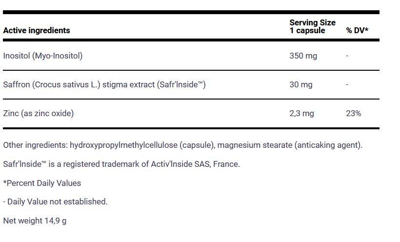 The manufacturer of the extract, the French company ACTIV’INSIDE, uses high-quality Iranian Sargol saffron. The patented gentle extraction process preserves the active substances of saffron and provides the highest content of safranal (2%), which is 10 times more than in non-encapsulated saffron extracts. Saffron stigma extract slows down the breakdown of serotonin by 50%, while reducing by 44% the secretion of the hormone cortisol, the level of which serves as a marker of stress experienced by a person.