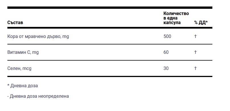 Тъй като подобрява и имунитета , това уникално дърво може да се използва за борба с алергии и автоимунни състояния в тялото, без страх, че в резултат на това те могат да се влошат. Кората повишава неспецифичната устойчивост на организма, като повишава клетъчния и хуморалния имунитет. Но най-важното е, че всички свойства на кората на мравченото дърво, изброени по-горе, са задълбочено проучени и потвърдени. Също така е доказано, че нито една от съставките, намиращи се в кората, не може да има същия ефект сама по себе си.